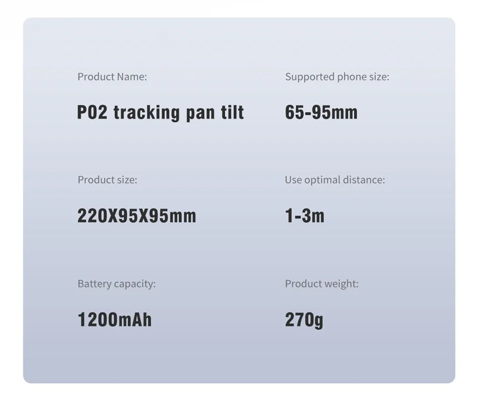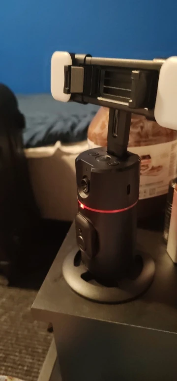 El Estabilizador con seguimiento facial 360° tecnología portátil está diseñado para grabar contenido sin necesidad de otra persona detrás de la cámara. Su sistema de rotación vertical de 360° y horizontal de 180° permite seguir el movimiento del usuario dentro de un rango óptimo de 1 a 3 metros.