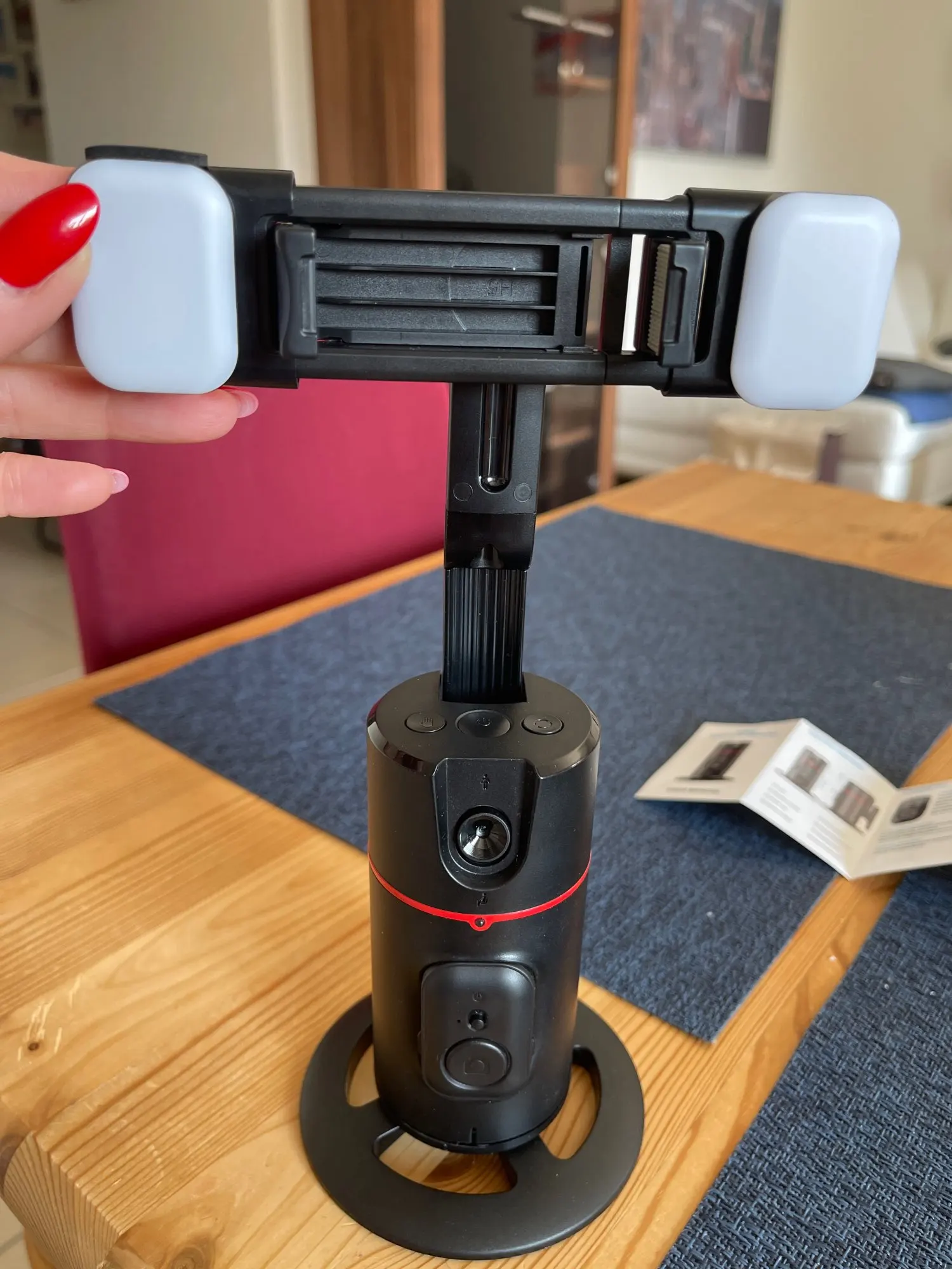 Fabricado en ABS, ofrece estructura resistente y ligera con un peso aproximado de 270 g. Compatible con modelos universales de smartphone, facilita transmisiones en vivo, videollamadas o creación de contenido en diferentes espacios.