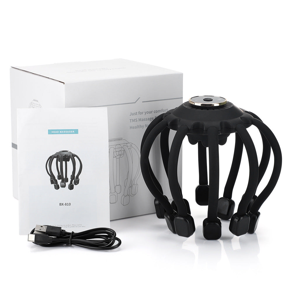 Contenido del paquete: El paquete incluye el masajeador de cabeza, un cable de datos USB y el manual.